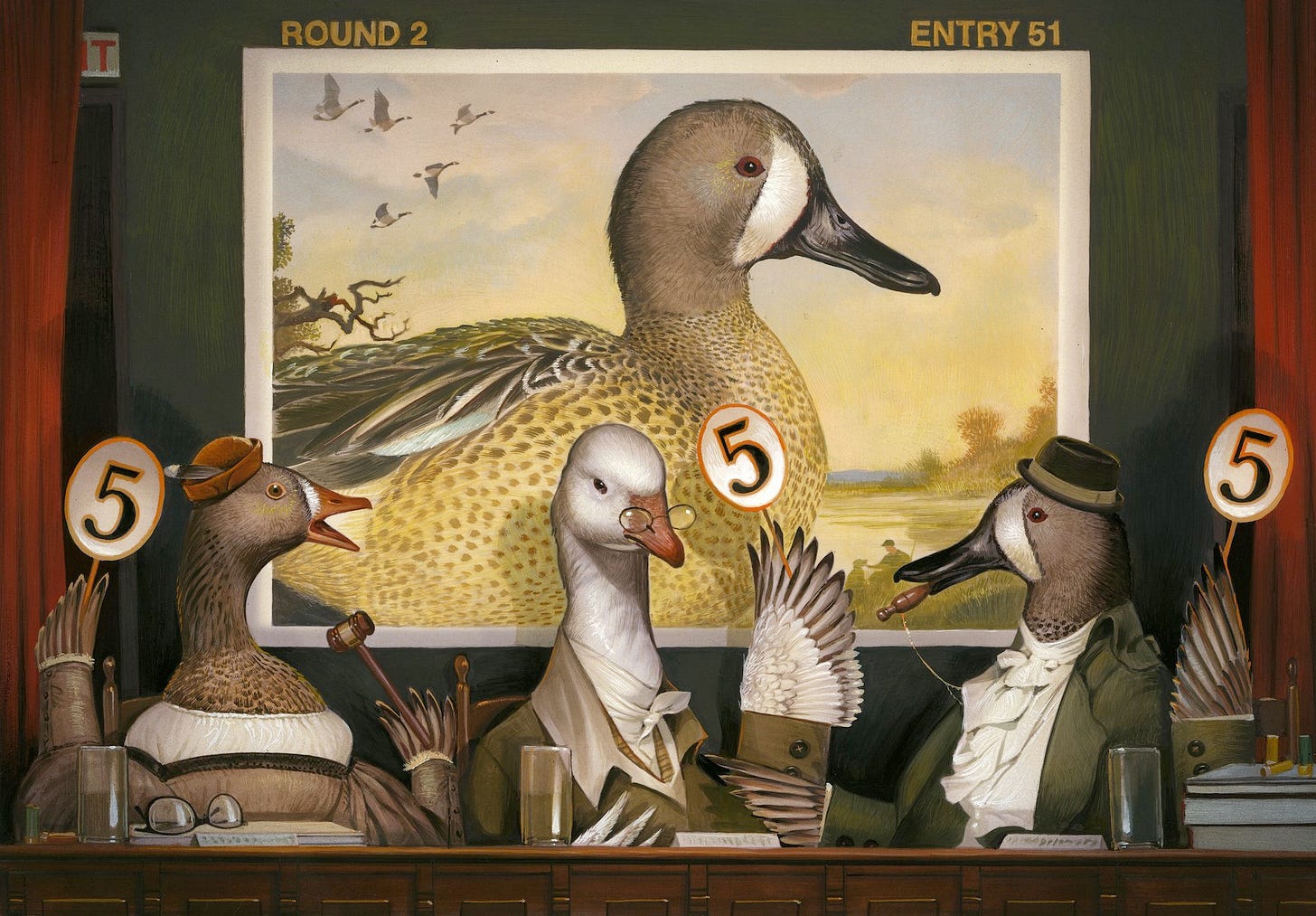 This is wonderful: royal frogs, masquerading lemurs, and florals with human faces are just some of the eccentric characters in this acclaimed illustrator Bill Mayer’s gouache paintings work.